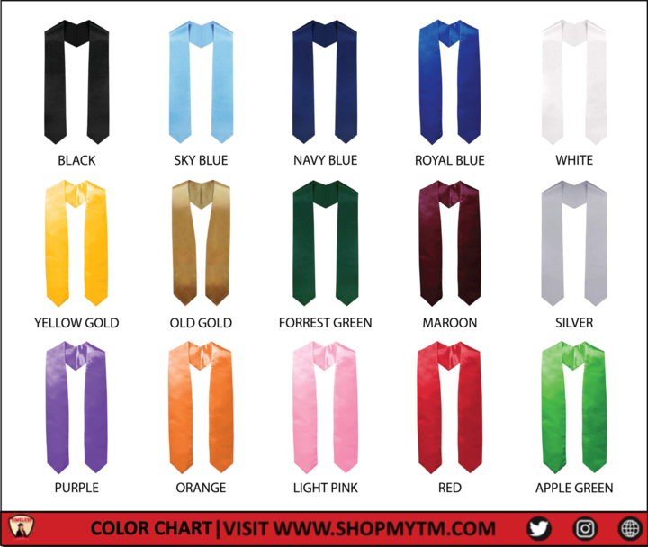 Our graduation Stoles are of the highest quality that come in a shiny tricot material. Stole measures 5" by 72".